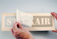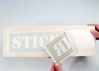Enlevez le papier siliconé protégeant la partie autocollante au dos du pochoir (papier opaque).