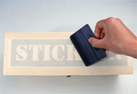 Collez le pochoir sur le support à peindre. Aidez-vous d'une de nos raclettes de pose.